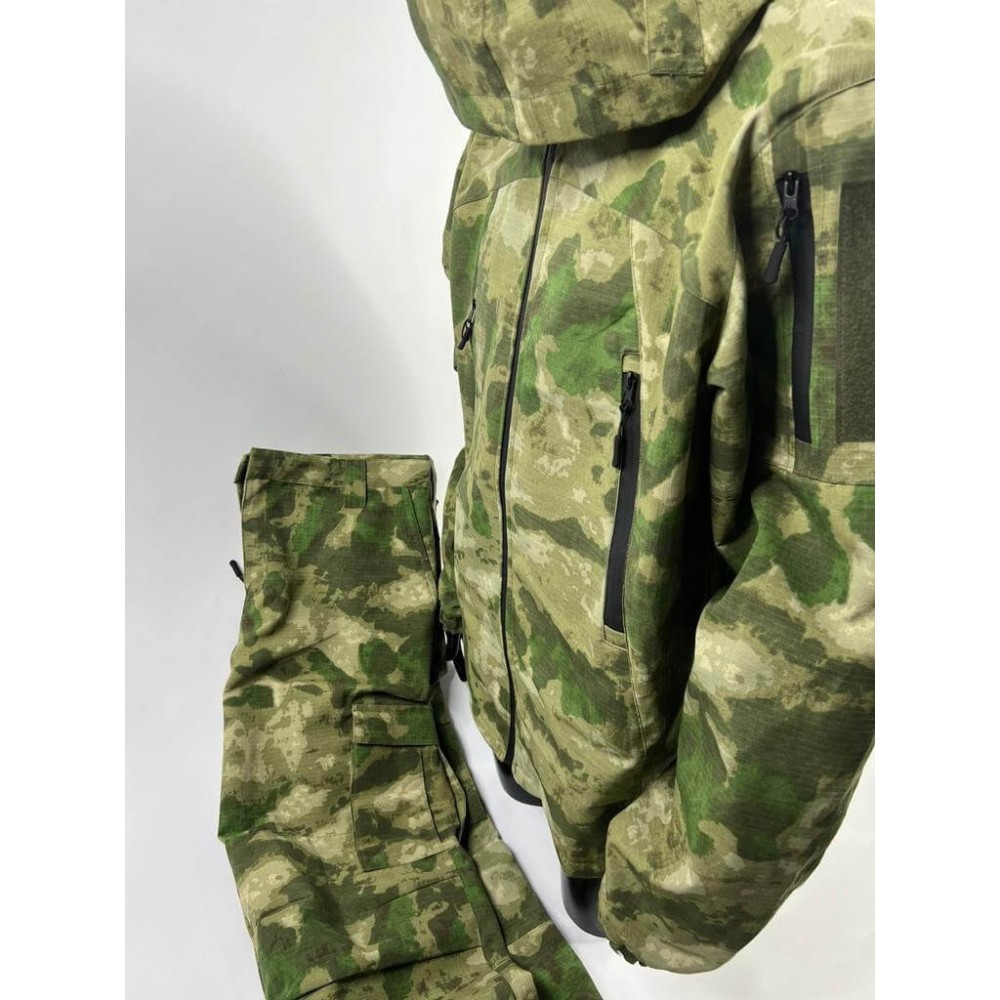 Костюм выполнен из высококачественного материала - грета рип-стоп, обладающего прочностью и износостойкостью. Этот материал обеспечивает надежную защиту в экстремальных условиях и имеет хорошую вентиляцию, что позволяет поддерживать комфортную температуру тела даже в жаркую погоду.